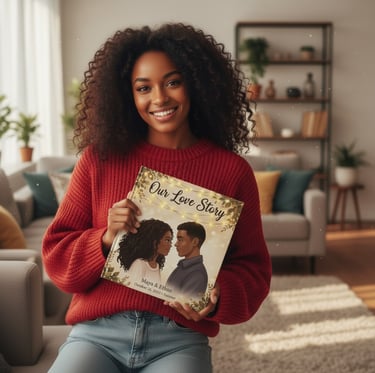 We turn your answers into a beautifully written, personalized love book with your names, moments, and special details.